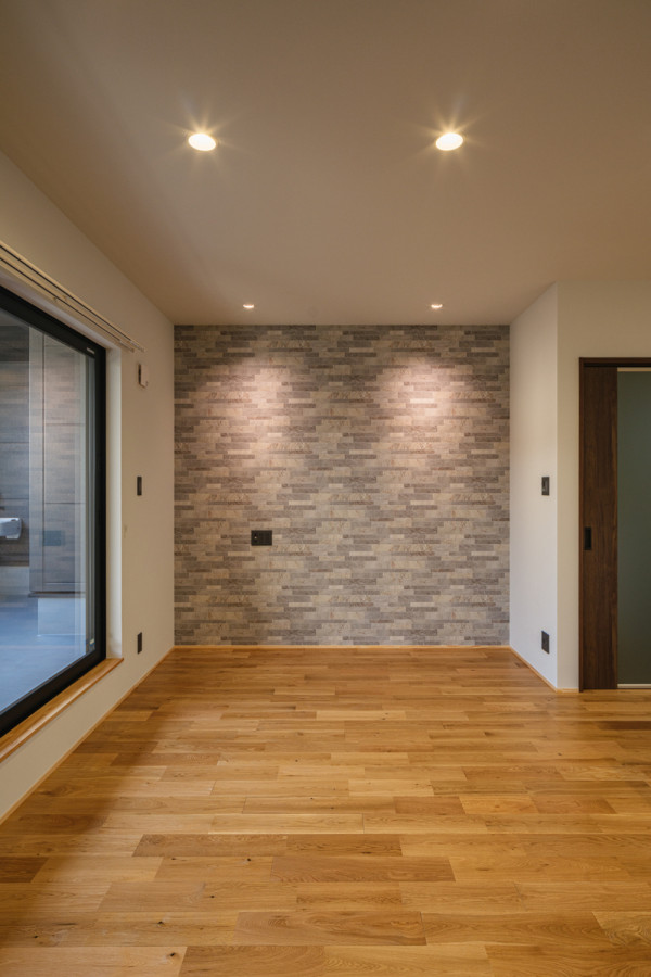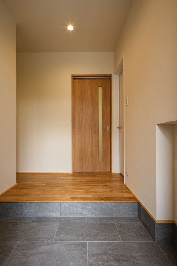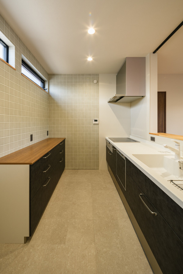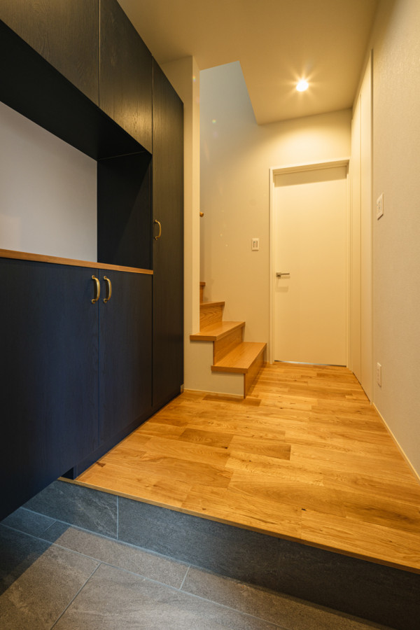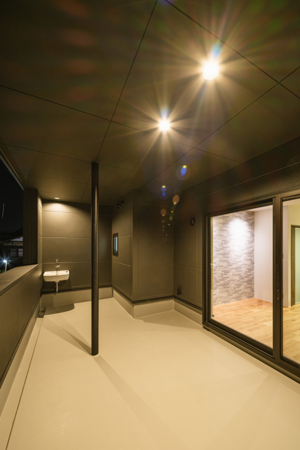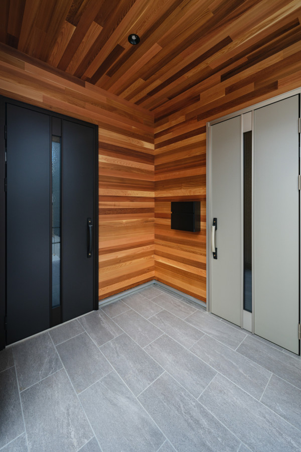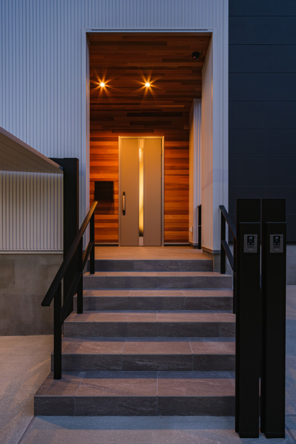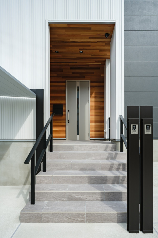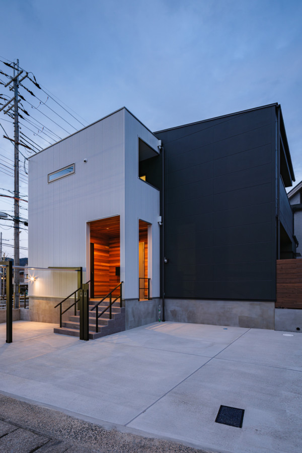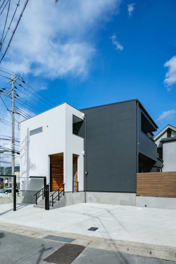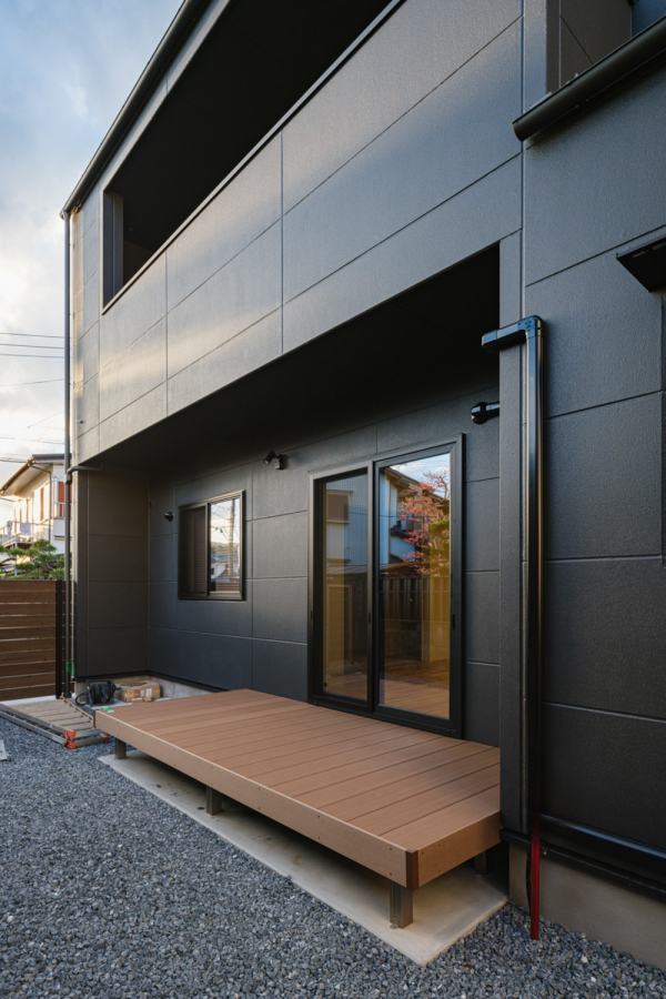 直線的な外観デザインが魅力の大人のための二世帯住宅